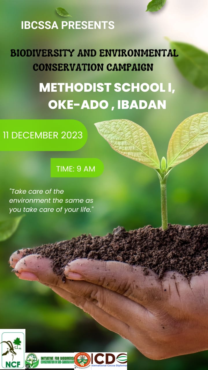 January 24, 2024 Biodiversity and Environmental Conservation Campaign at Methodist School 1. Oke Ado, Ibadan Start time December 11, 2023 09:00