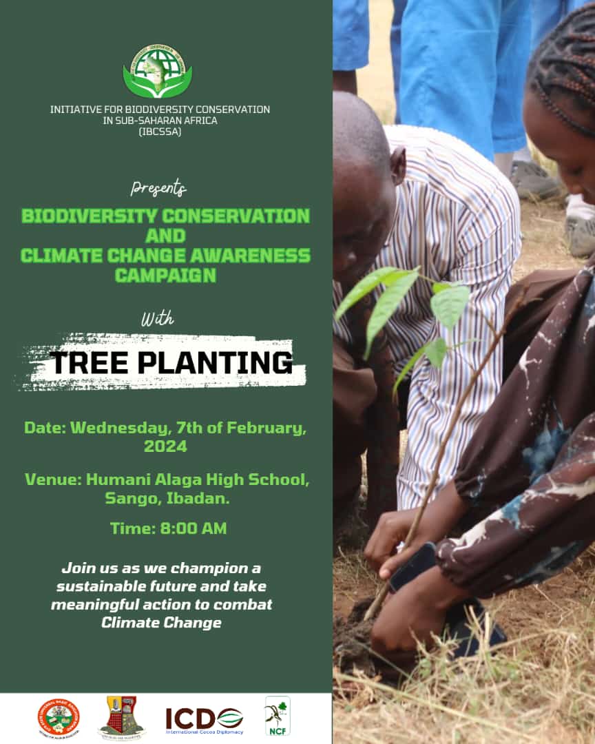 February 13, 2024 Biodiversity Conservation and Climate Change Awareness Campaign with Tree Planting at Humani Alaga High School, Sango, Ibadan Start time February 07, 2024 08:00