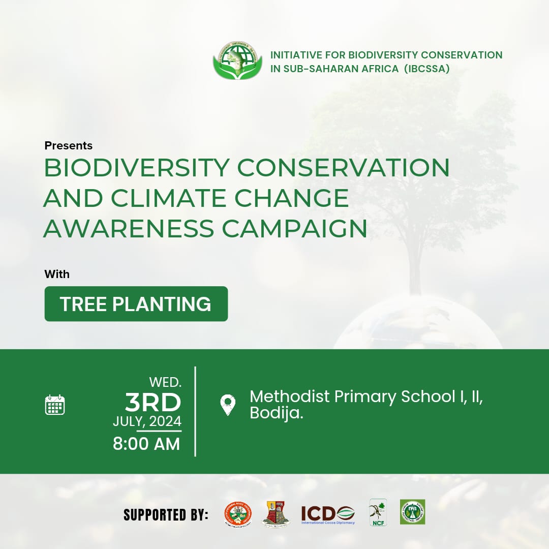 July 5, 2024 Biodiversity Conservation and Climate Change Awareness Campaign with Tree Planting at Methodist Primary School I, II, Bodija Start time July 03, 2024 08:00 Address Methodist Primary School I, II, Bodija