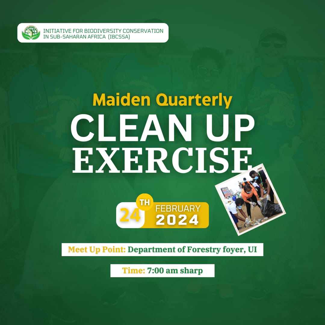 March 28, 2024 Quarterly Clean Up Exercise at Faculty of Agriculture & Renewable Natural Resources, University of Ibadan Start time February 24, 2024 07:00 Address Department of Forestry, University of Ibadan