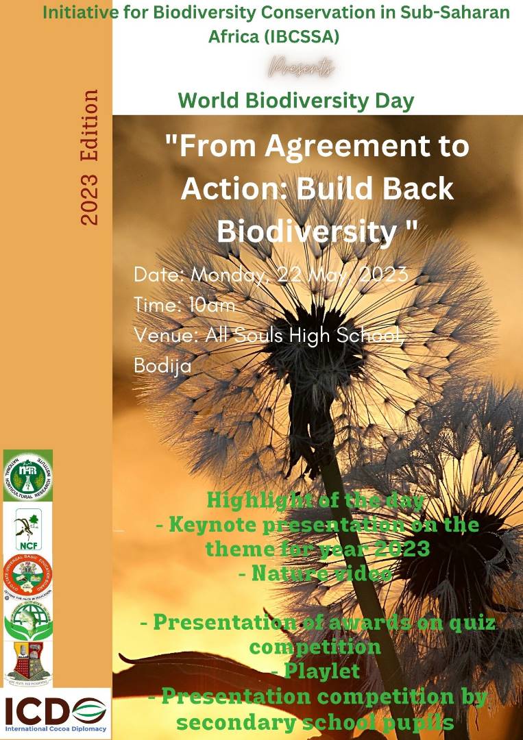 May 19, 2023 World Biodiversity Day 2023 Start time May 22, 2023 10:00 Address All Souls High School, Bodija